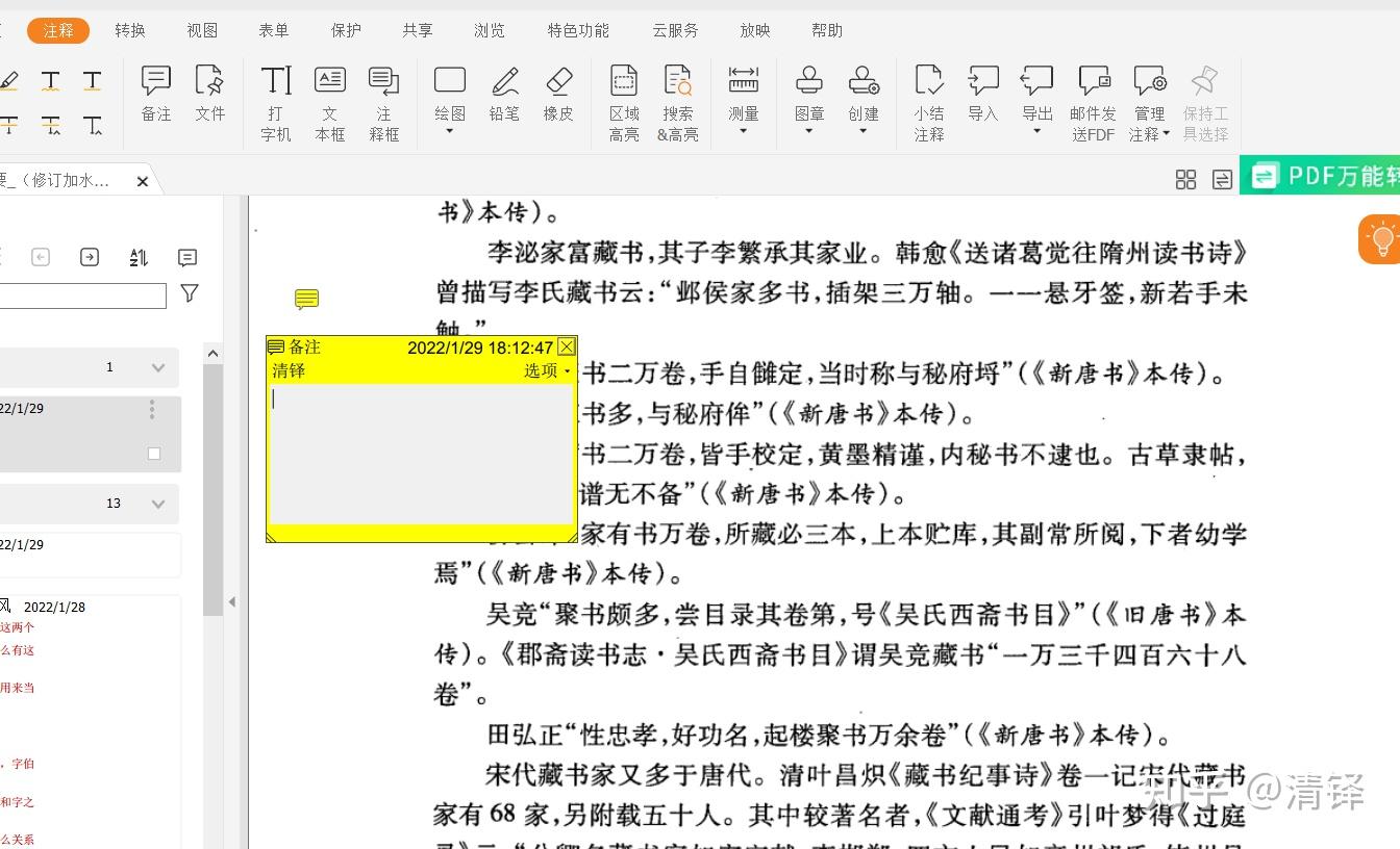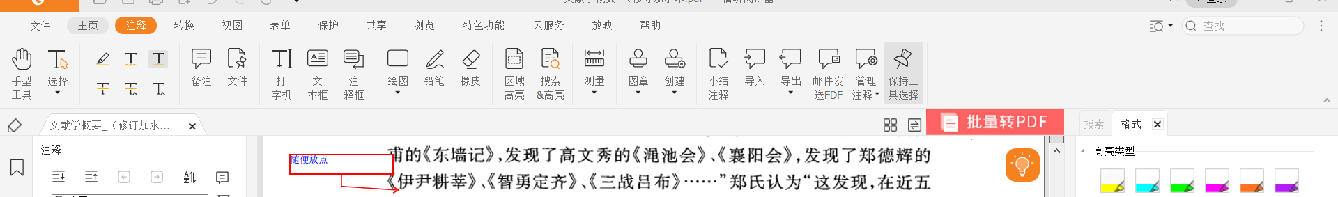 批注:这个批注的图标我还挺喜欢的,简洁,小号,不占地。这个批注文本框不能和图标一起显示。总览的话是在交流区显示,如果是论文的话,联网应该可以和人交流吧,不过我没用过这个功能。