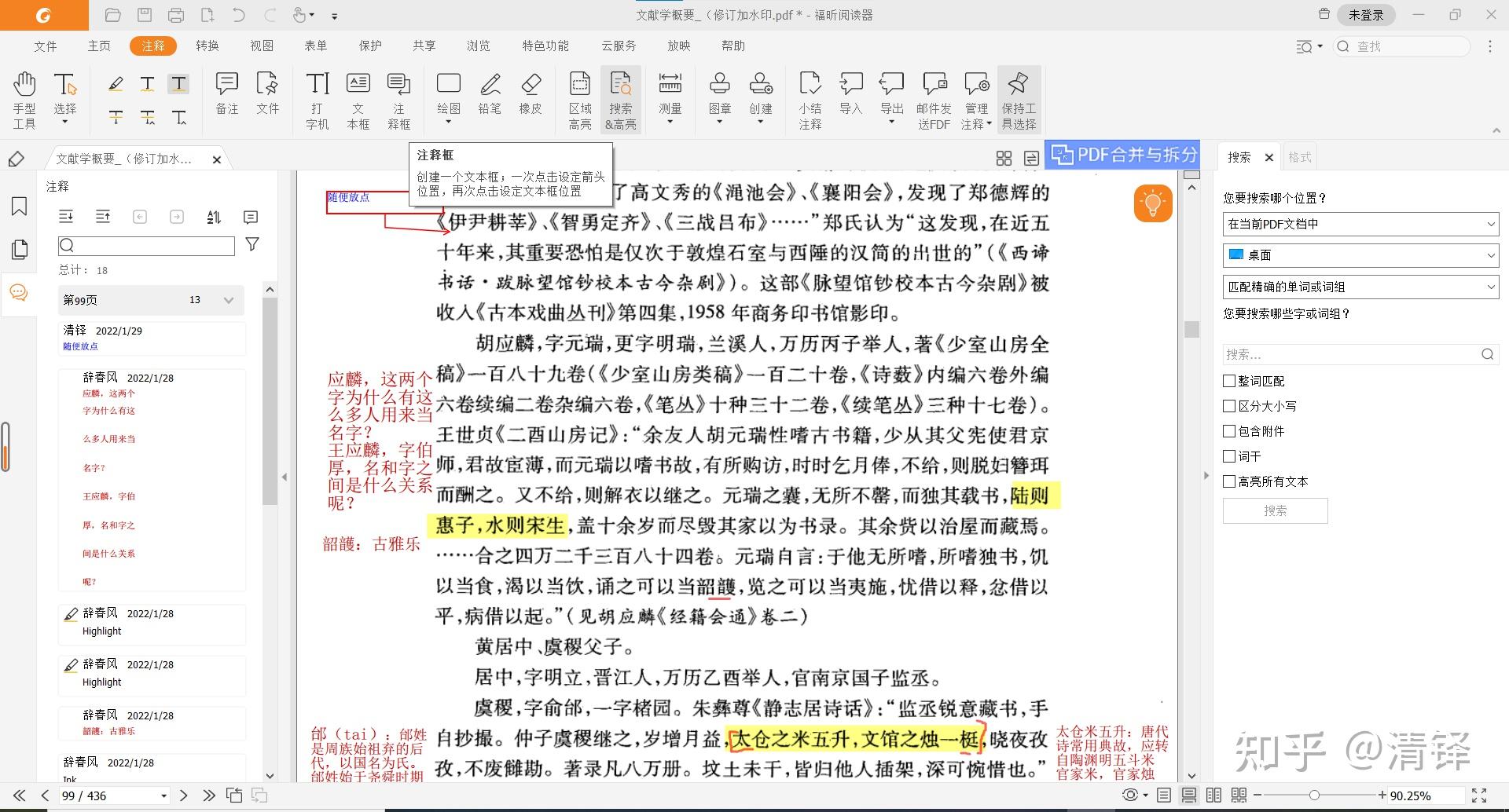 查找:查找在PDF里没有用,网页上可以,也不能搜索批注什么。