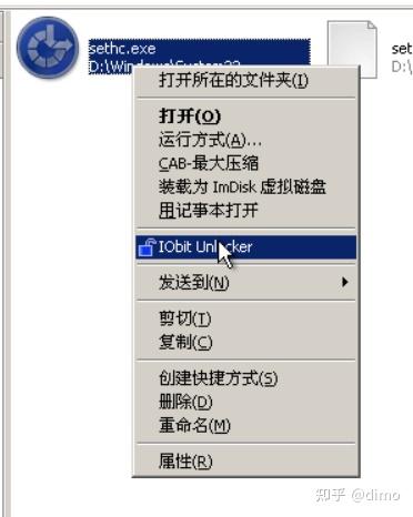 安装完成后,就可以从右键菜单启动程序了。我们找到sethc,右键打开IObitUnlocker。