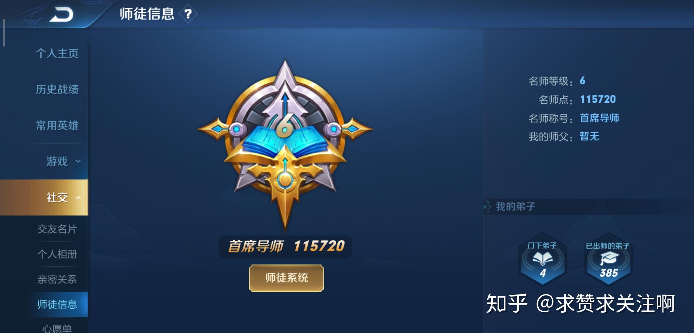 师徒信息显示名师等级、名师点、名师称号、我的师父、门下弟子数、已出师的弟子数。