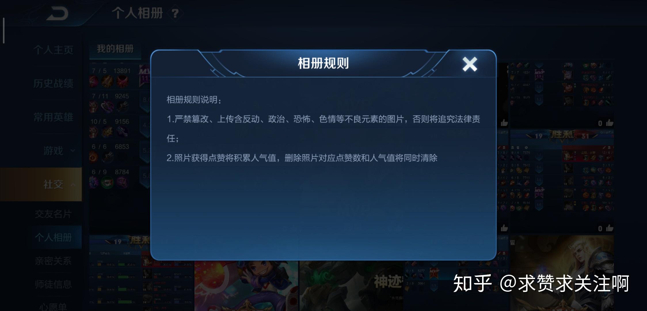 个人相册里可以放一些战绩很好的截图,也有相册规则。