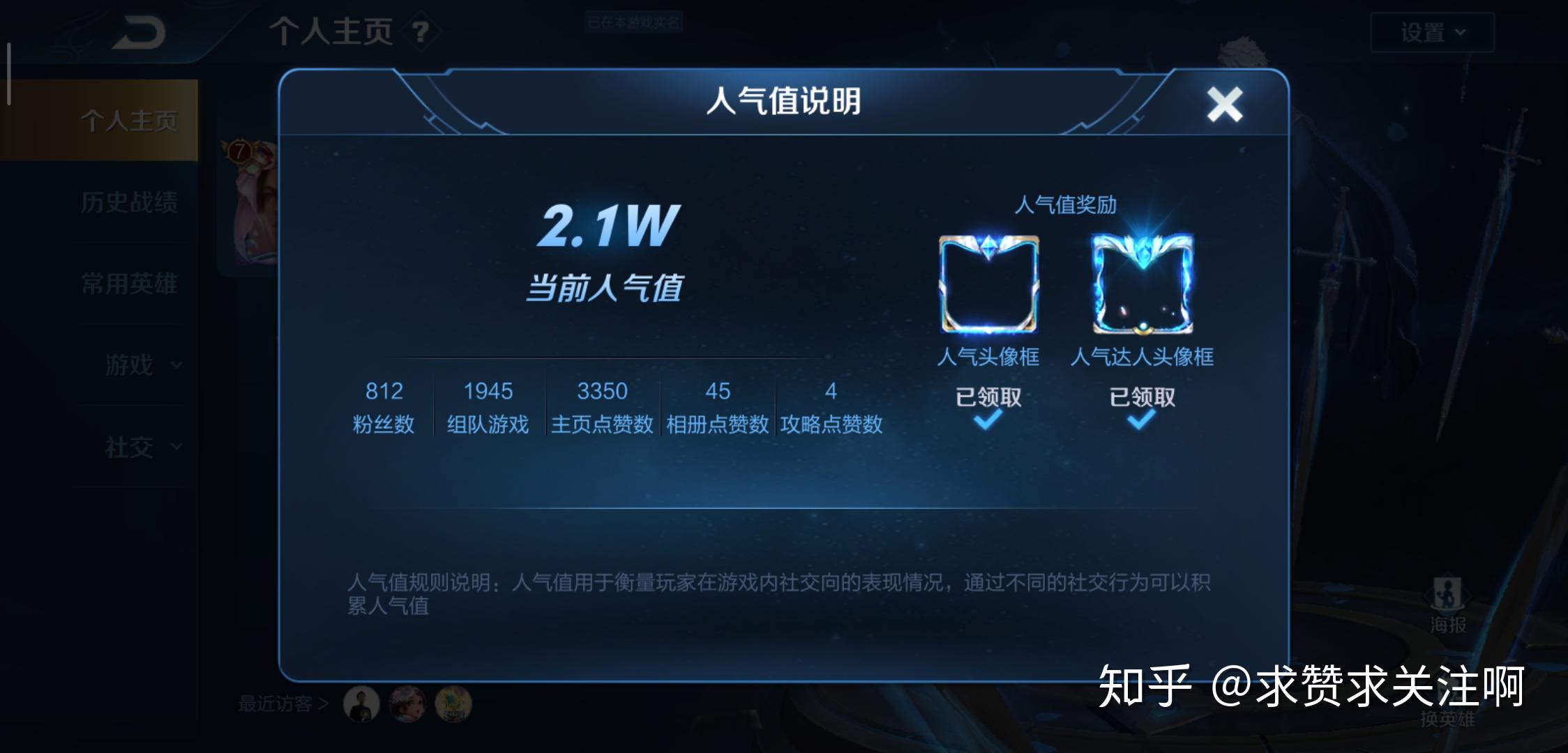 右边的小火焰是人气值,点击打开后有人气值说明,玩家的人气值到一定数值后还可以领取人气头像框和人气达人头像框,都是比较酷炫的动态头像框。