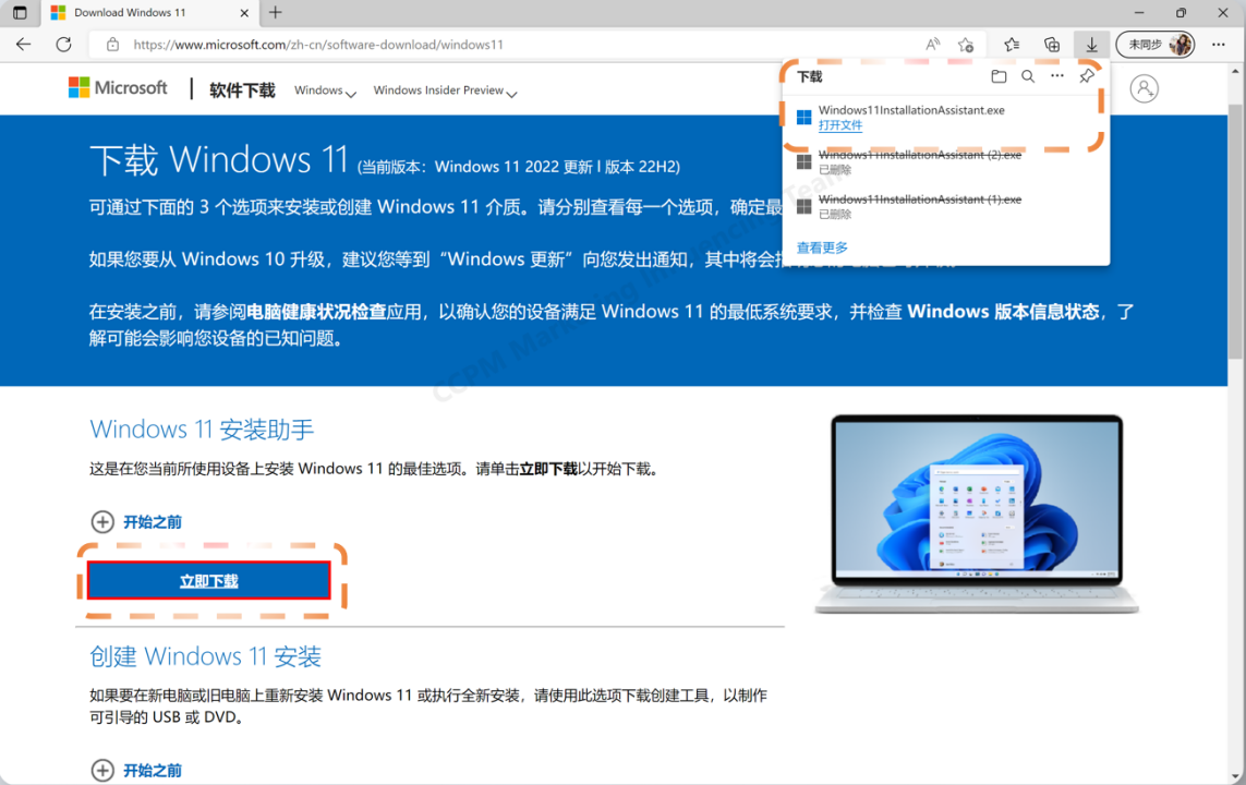 如果你是 Windows 10 的用户,或者已经是 Windows 11 系统,但想早点体验新版本,那么也可以使用微软官方推出的 Windows 11 安装助手进行安装,下载链接见下方。
