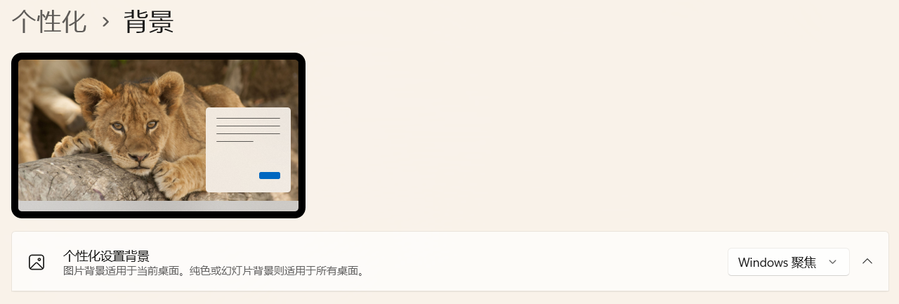 除此之外,这次对桌面壁纸也增加了一项新功能 Windows 聚焦。我一直还挺喜欢聚焦的壁纸的,这个聚焦的图源,据说是 Bing 的图库,如果你有使用 Bing 搜索的话,应该可以看到搜索首页每日轮换的美图,还是很符合我的审美的。
