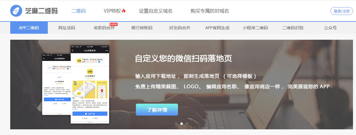 芝麻二维码支持任意网址和文本内容生成二维码图片,让繁杂的信息浓缩于一张简单的、嵌入独一无二logo的二维码里,扫描即可展现。